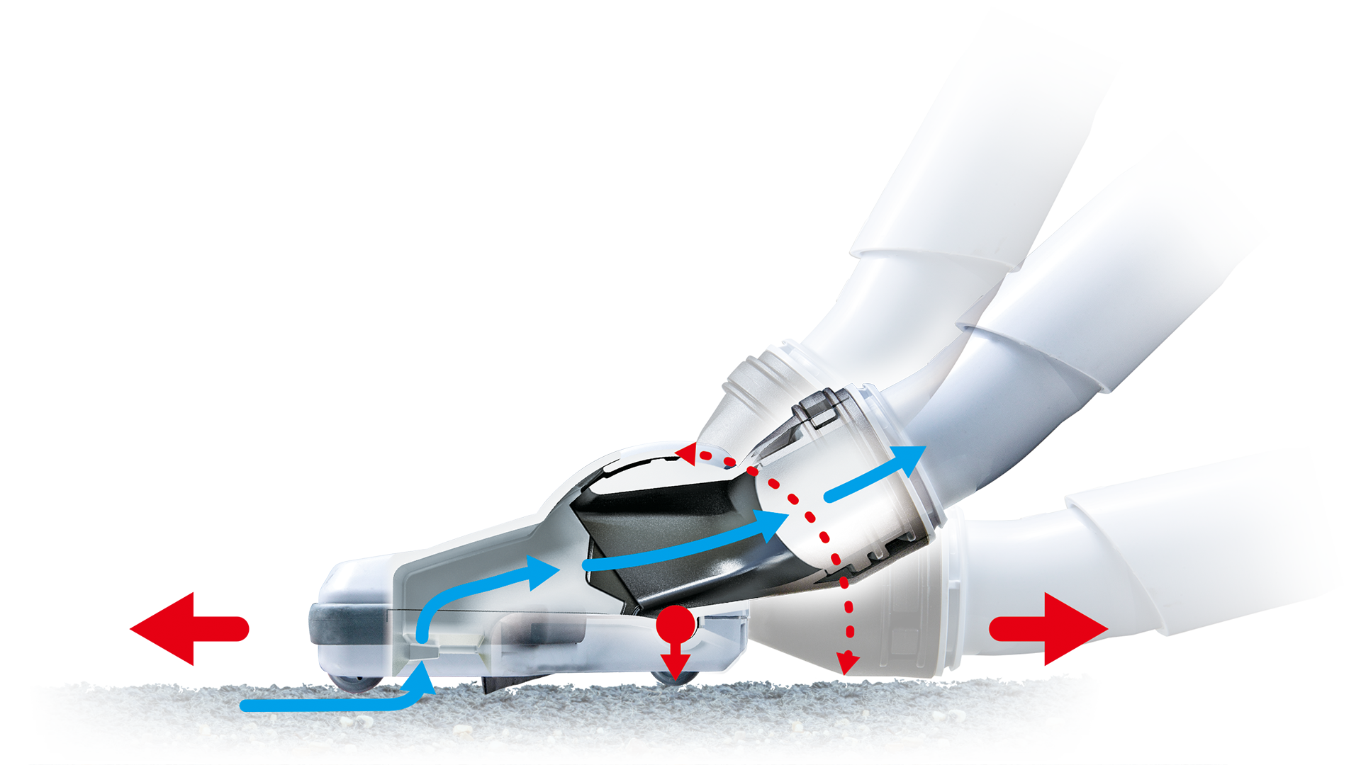 Niski poziom hałasu 54dB(A) uzyskano dzięki przeprojektowaniu ssawki do podłóg, co zapewniło redukcję hałasu generowanego przez powietrze przepływające przez ssawkę oraz płynniejszą pracę.