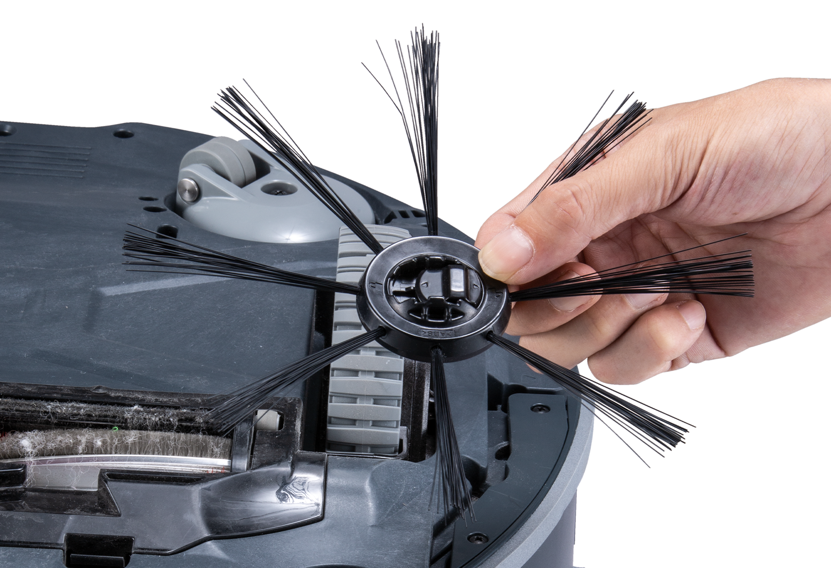 DRC300 offers large side brushes which enables to clean alongside walls, around obstacles or tight corners in either of the running modes. It has improved repairability due to bottom plate and side brushes that can be removed without tools.