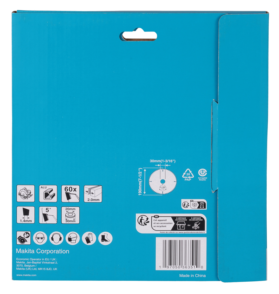 Tarcza o średnicy 190 mm do cięcia aluminium. Nadaje się do ręcznych pilarek tarczowych. Posiada 60 zębów z węglików spiekanych, szczelinę 2,2 mm i średnicę otworu 30 mm.