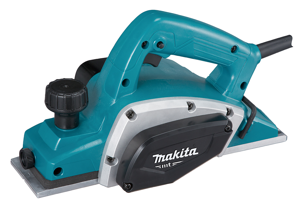 Duży rowek V ułatwia struganie krawędzi. Wyposażony w blokadę włącznika oraz we wspornik chroniący zarówno obrabiany materiał jak i noże. Posiada ergonomicznie zaprojektowaną rękojeść dla zapewnienia maksymalnej kontroli i komfortu pracy. Antypoślizgowy elastomer pokrywa gałkę regulacji głębokości. Z możliwością podłączenia urządzenia odsysającego.